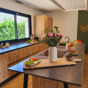 Upon entering Casa SISTA, a huge living room opens onto the fully equipped kitchen, fridge, microwave, oven, dishwasher, hotplates, Nespresso coffee maker, kettle, juicer, toaster and blender. We we have selected a nice tableware so that you can make beautiful tables.