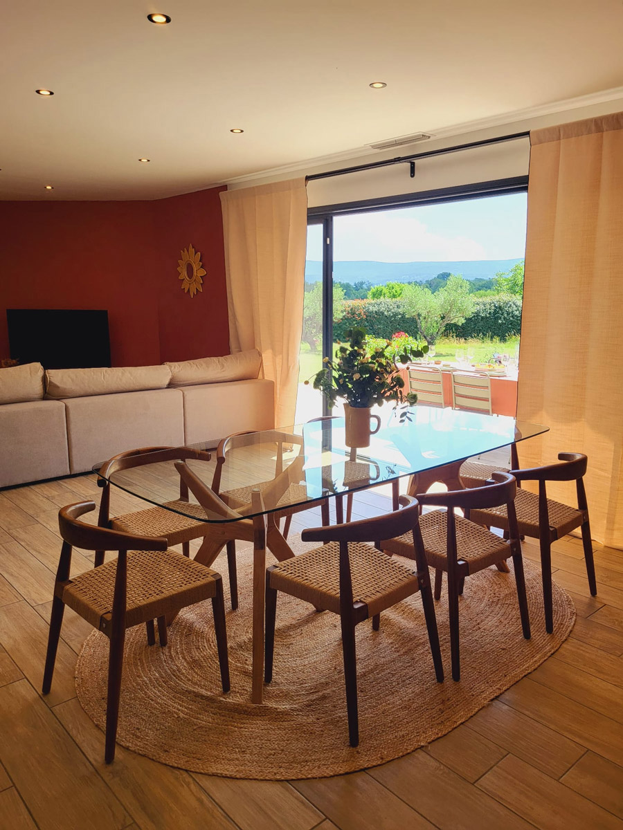 A huge bay window opens onto the terrace and the garden. The terrace is shaded by an electric pergola. At your disposal a large table and armchairs as well as a gaz plancha. A garden room where you can read, have your breakfast or drink an aperitif at sunset.